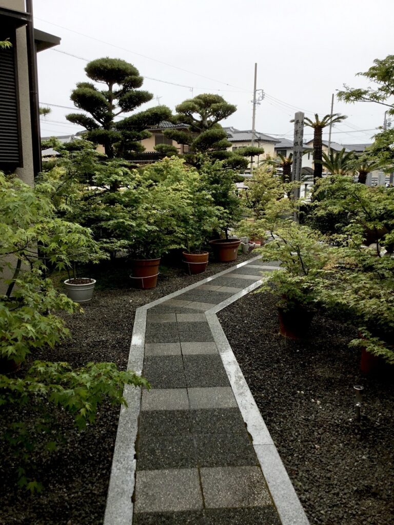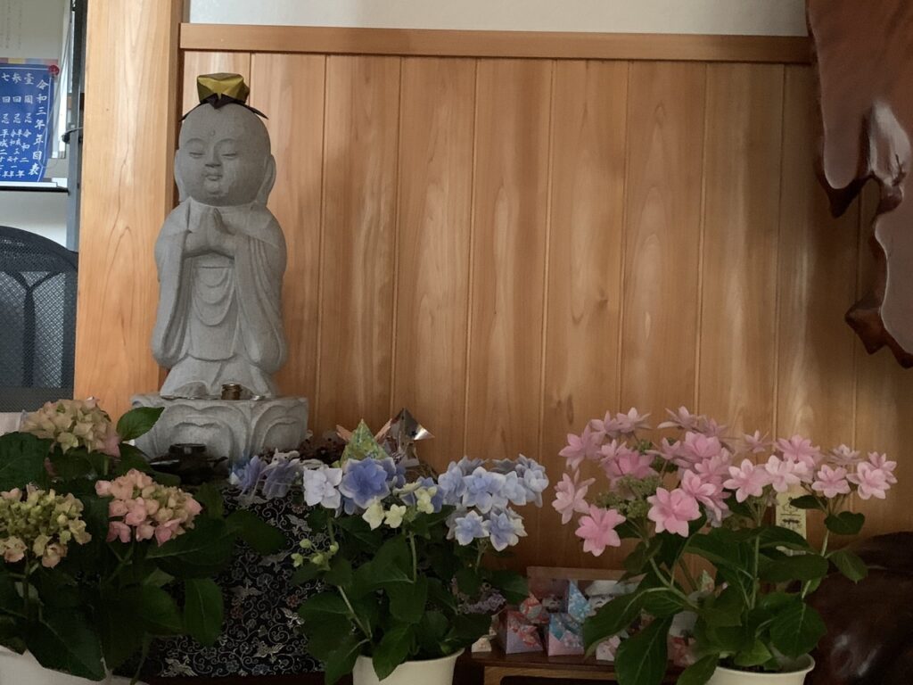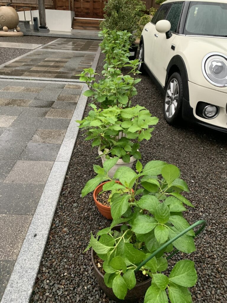 林泉寺の石の門を入ると向かって右側にアジサイの鉢を並べてみました。