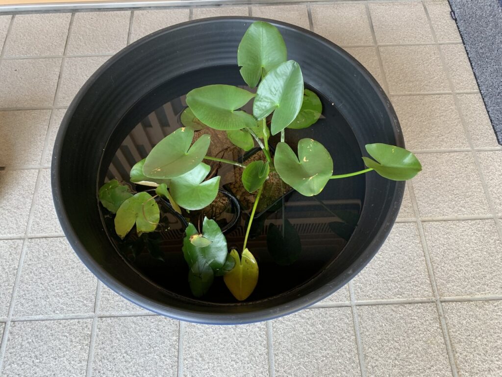 水草とスイレンが向かって右、左はレモン