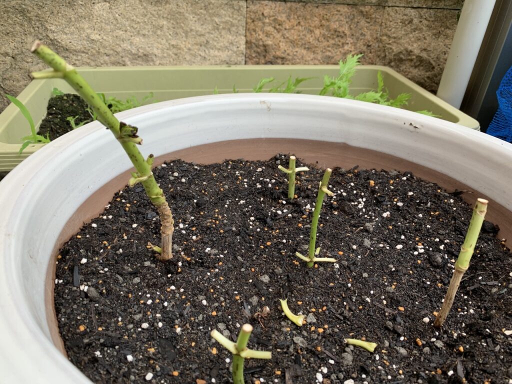芽がついているところを選んで切って植えました。