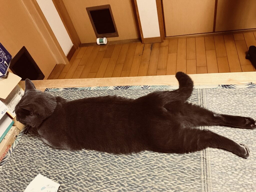 山根は暑いので保冷剤をタオルでまいた上で寝ています。