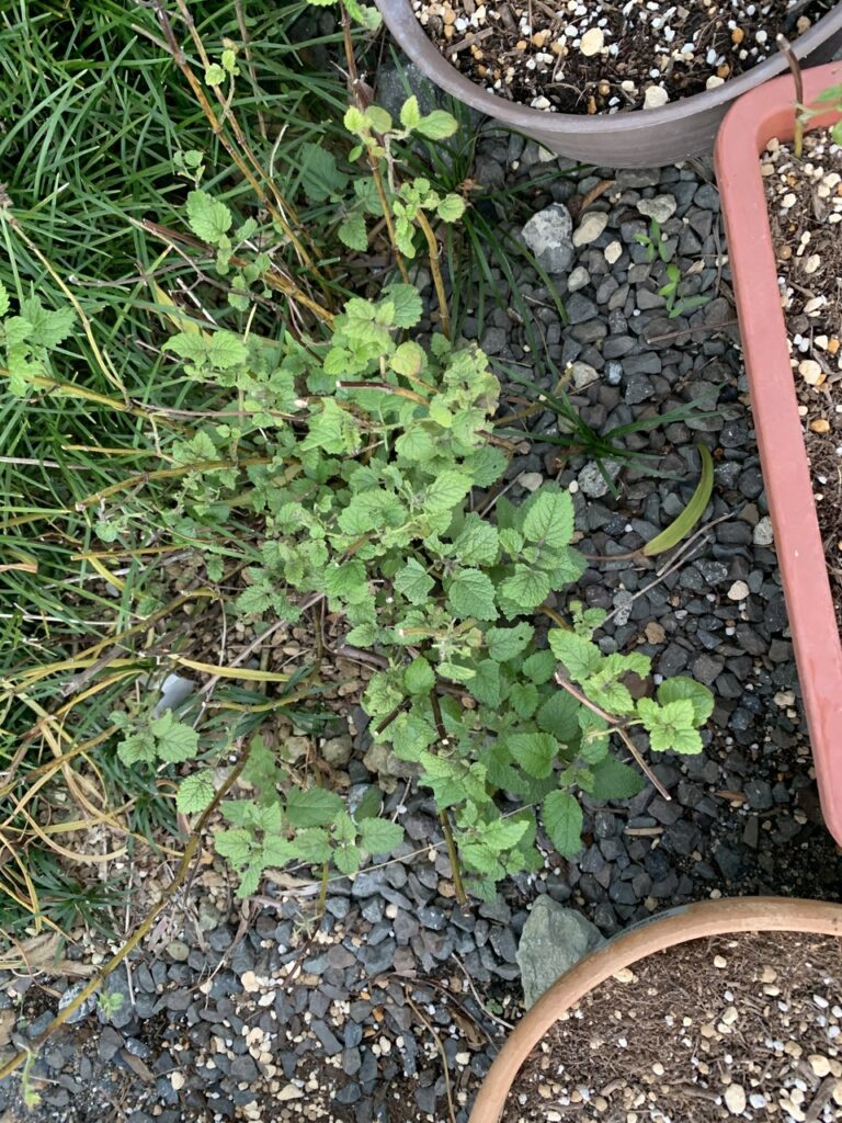 玄関の鉢です。左からミント、真ん中は南天、右は万両。