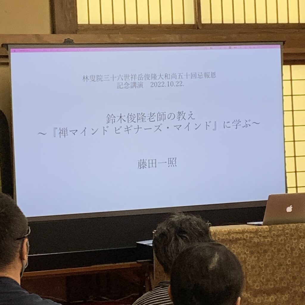 そして22日の午後、藤田老師が座禅と鈴木俊隆老師についてお話をされる、誰でも聞きに行っていいんだよと、僕も行くからと言われて、申し訳ないなあと思いながら参加させて頂きました。