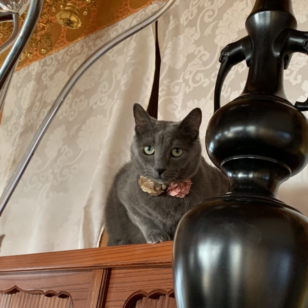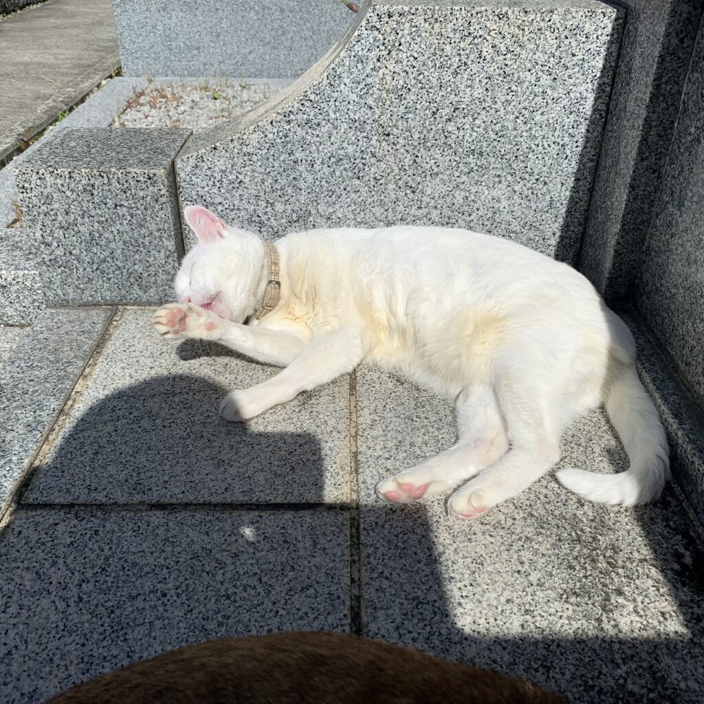 朝、本堂から「山根ええ」と読んでおいて、朝課をやっていたら、本堂の入り口から「にゃーん」と帰ってきました。